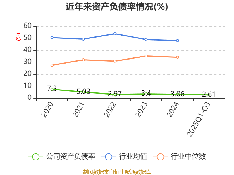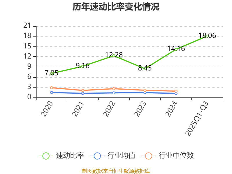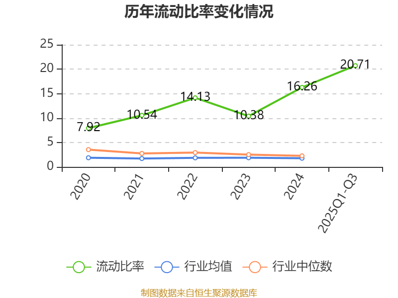 2025年前三季度,公司流动比率为20.71,速动比率为18.06。