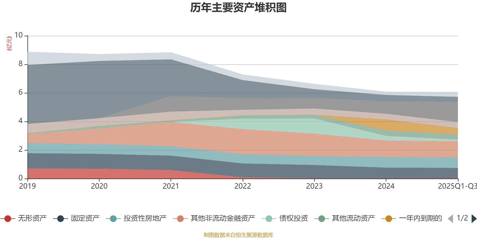 资产重大变化方面,截至2025年三季度末,公司交易性金融资产合计较上年末增加63.39%,占公司总资产比重上升9.13个百分点;一年内到期的非流动资产较上年末减少44.61%,占公司总资产比重下降5.62个百分点;债权投资较上年末减少68.22%,占公司总资产比重下降3.56个百分点;货币资金较上年末减少23.07%,占公司总资产比重下降1.69个百分点。