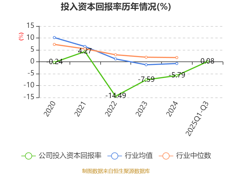 盈利能力方面, 2025年前三季度公司加权平均净资产收益率为-1.11%,同比下降0.6个百分点。公司2025年前三季度投入资本回报率为0.08%,较上年同期下降0.46个百分点。