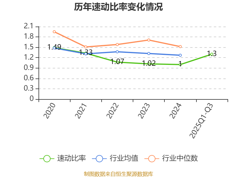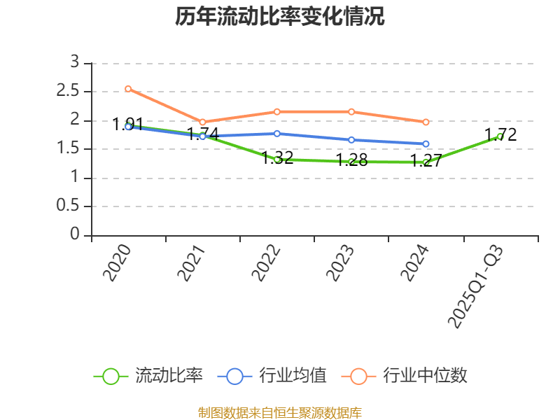 2025年前三季度,公司流动比率为1.72,速动比率为1.3。