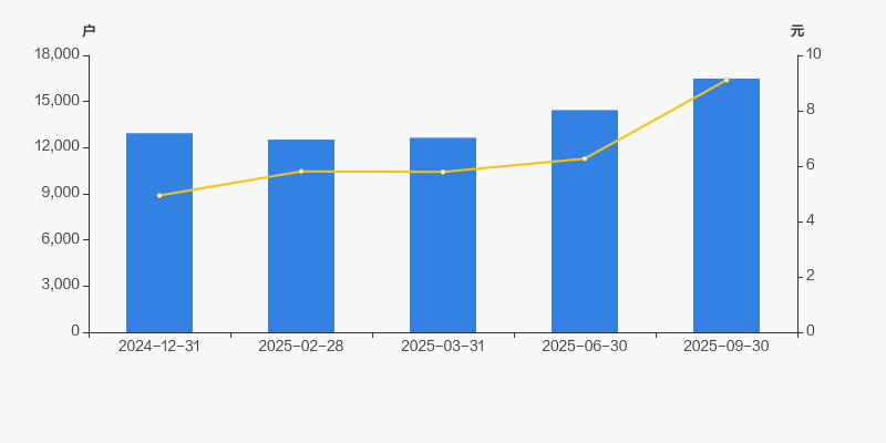截至2025年9月30日,公司最新总股本为6.56亿股,其中流通股本为5.25亿股。户均持有流通股数量由上期的2.53万股上升至3.19万股,户均流通市值29.03万元。