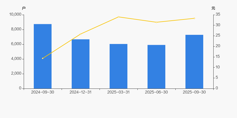 截至2025年9月30日,公司最新总股本为1.13亿股,其中流通股本为6409.68万股。户均持有流通股数量由上期的1.09万股下降至8808股,户均流通市值29.33万元。