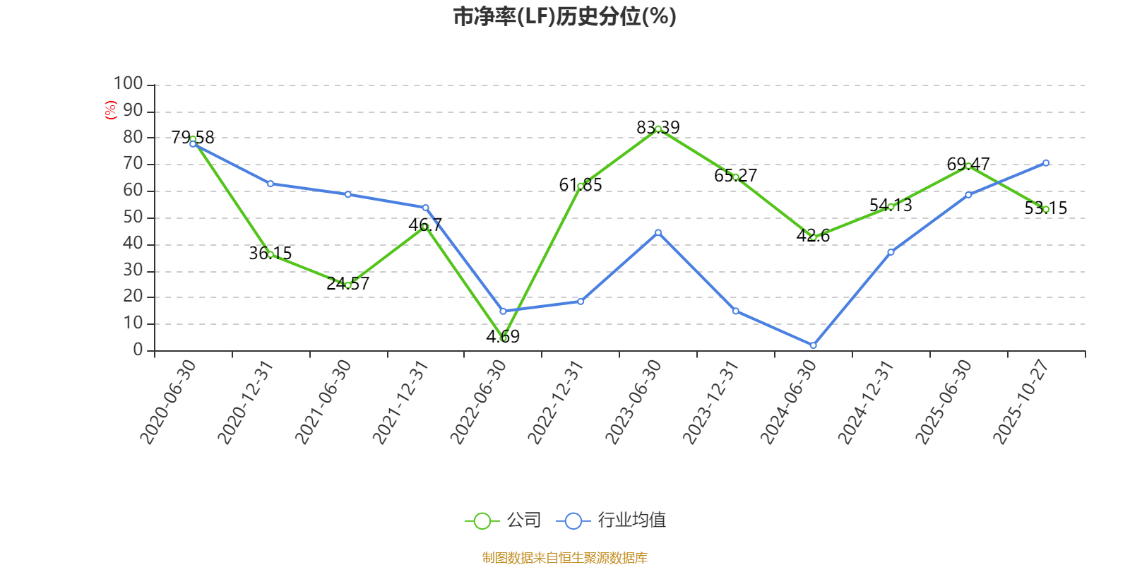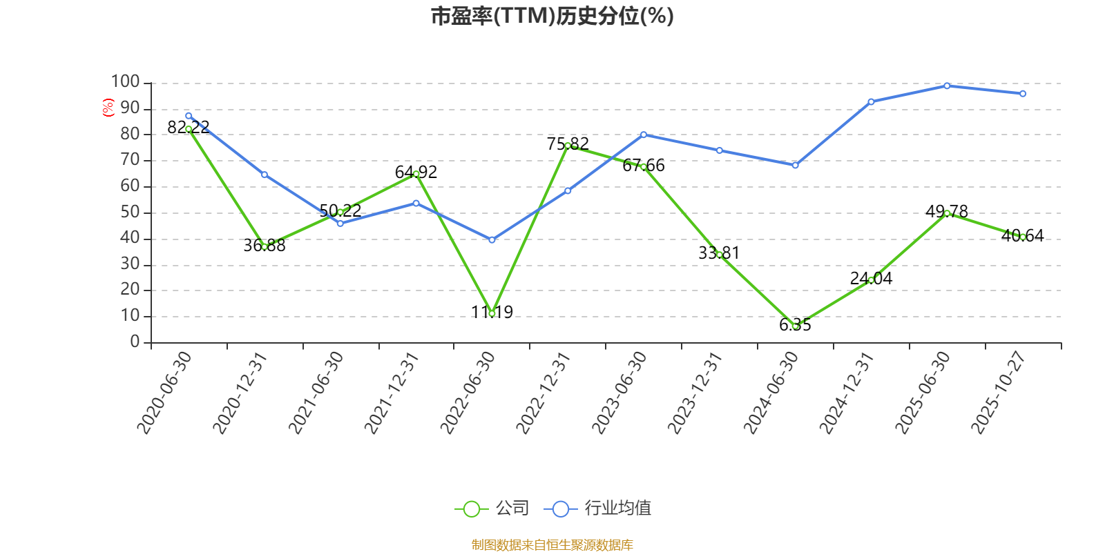 市盈率、市净率为负时,不显示当期分位数,会导致折线图中断。