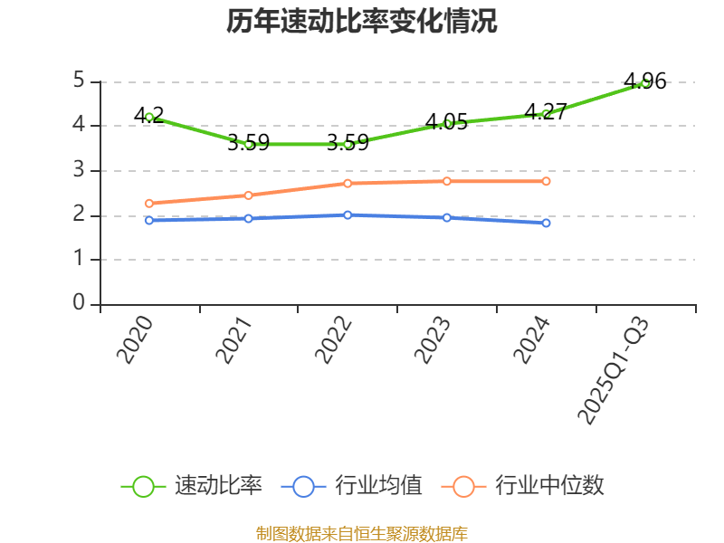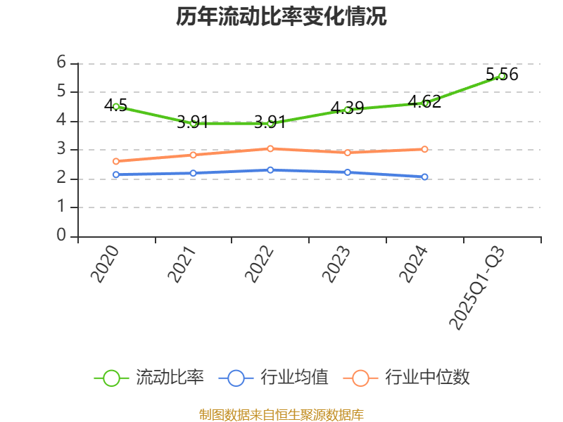2025年前三季度,公司流动比率为5.56,速动比率为4.96。
