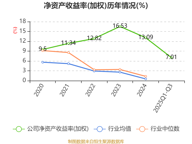 盈利能力方面, 2025年前三季度公司加权平均净资产收益率为7.01%,同比上升0.09个百分点。公司2025年前三季度投入资本回报率为6.51%,较上年同期上升0.69个百分点。