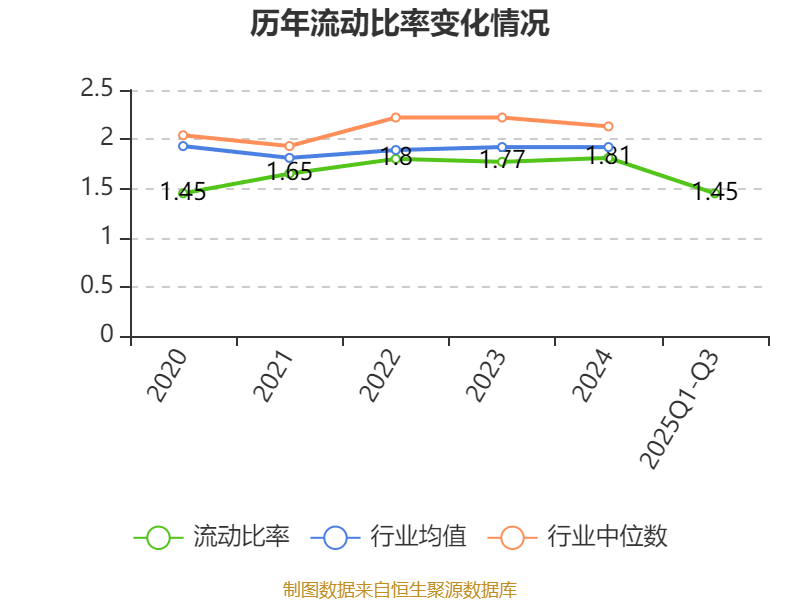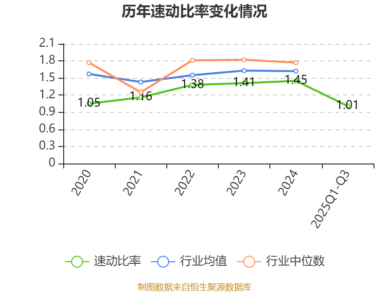 2025年前三季度,公司流动比率为1.45,速动比率为1.01。