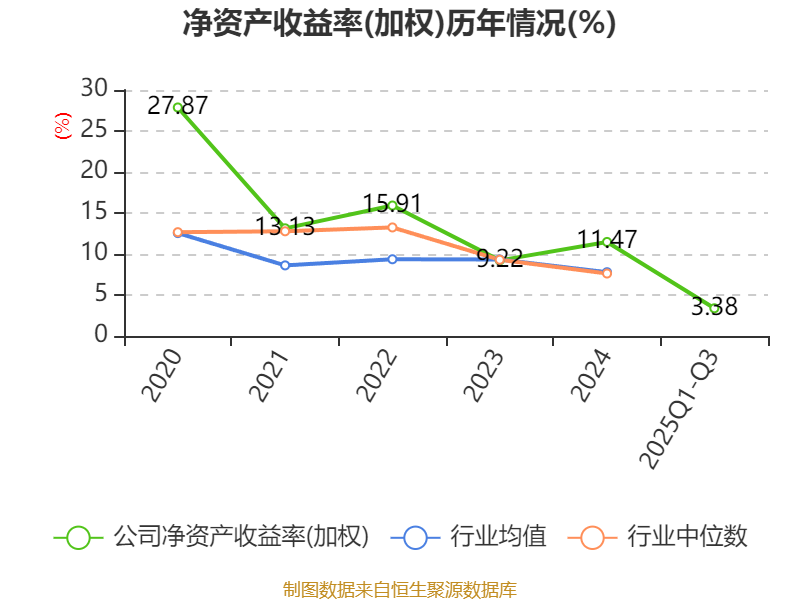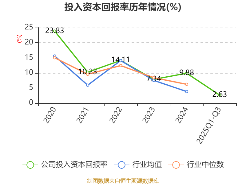 盈利能力方面, 2025年前三季度公司加权平均净资产收益率为3.38%,同比下降4.35个百分点。公司2025年前三季度投入资本回报率为2.63%,较上年同期下降3.96个百分点。