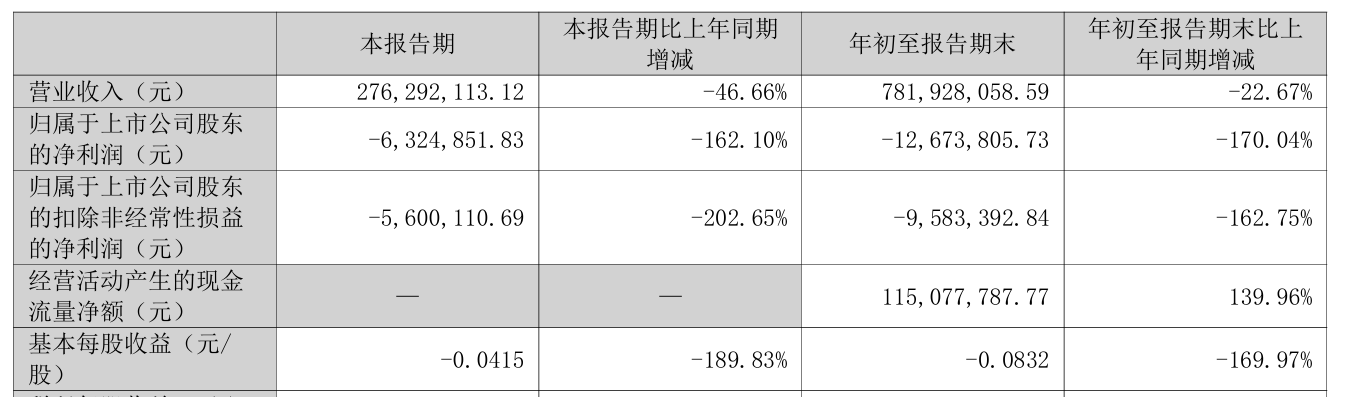 10月27日晚间,天顺股份(002800)公告,公司第三季度营收为2.76亿元,下降46.66%;净利润亏损632.49万元,下降162.10%。前三季度营收为7.82亿元,下降22.67%;净利润亏损1267.38万元,下降170.04%。