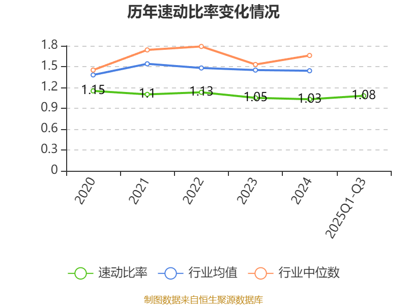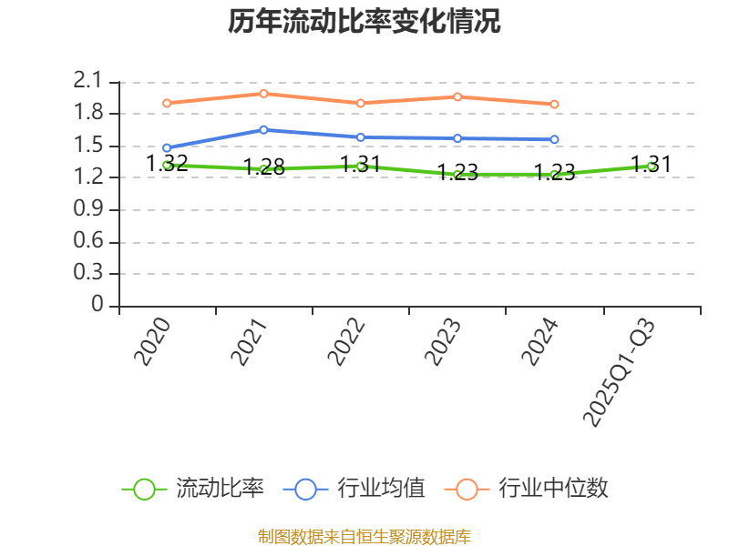 2025年前三季度,公司流动比率为1.31,速动比率为1.08。