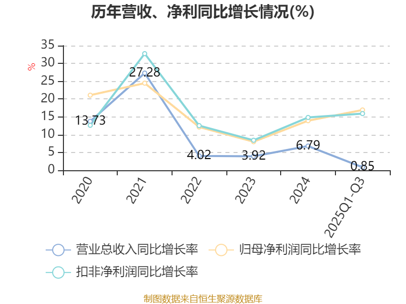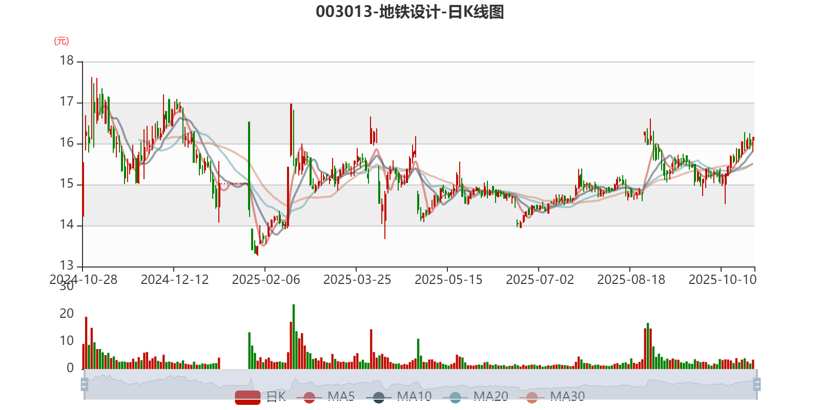 中证智能财讯地铁设计(003013)10月28日披露2025年第三季度报告。前三季度公司实现营业总收入19.33亿元,同比增长0.85%;归母净利润3.47亿元,同比增长16.92%;扣非净利润3.42亿元,同比增长15.91%;经营活动产生的现金流量净额为-4.19亿元,上年同期为-5.3亿元;报告期内,地铁设计基本每股收益为0.86元,加权平均净资产收益率为12.26%。