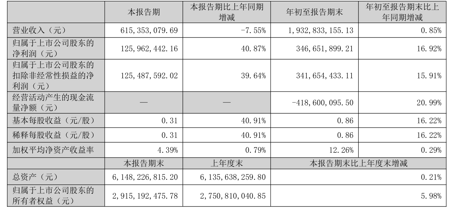盈利能力方面, 2025年前三季度公司加权平均净资产收益率为12.26%,同比上升0.29个百分点。公司2025年前三季度投入资本回报率为10.2%,较上年同期上升0.34个百分点。