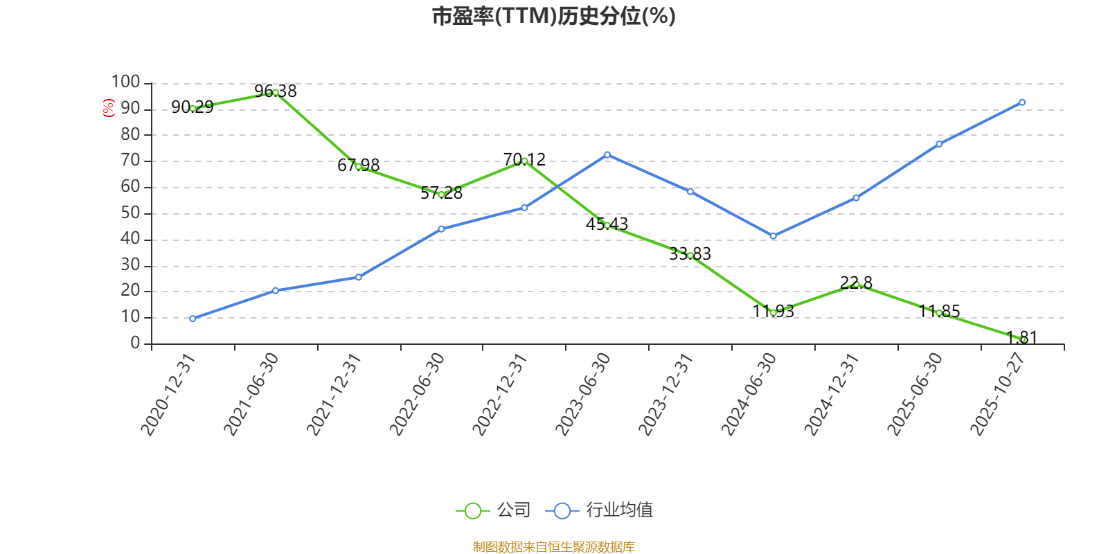市盈率、市净率为负时,不显示当期分位数,会导致折线图中断。