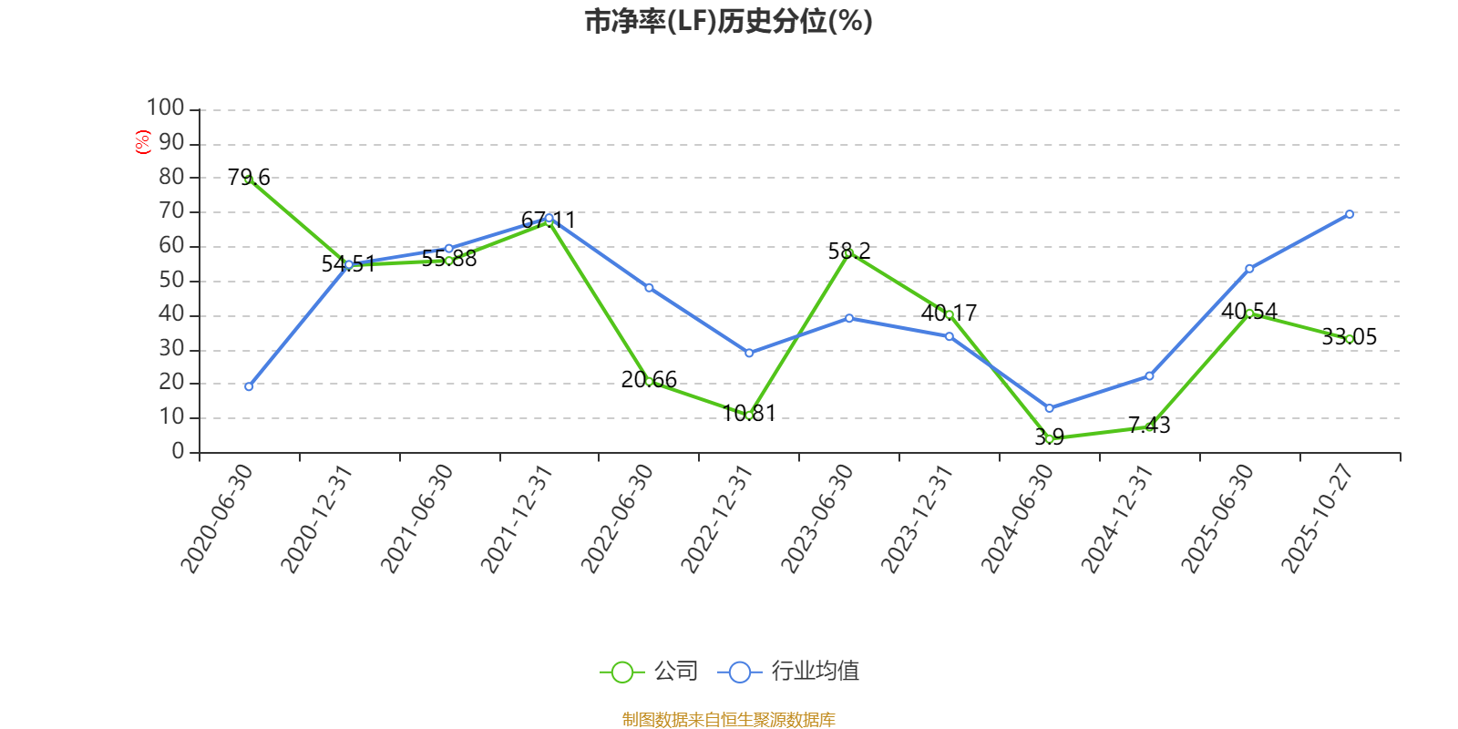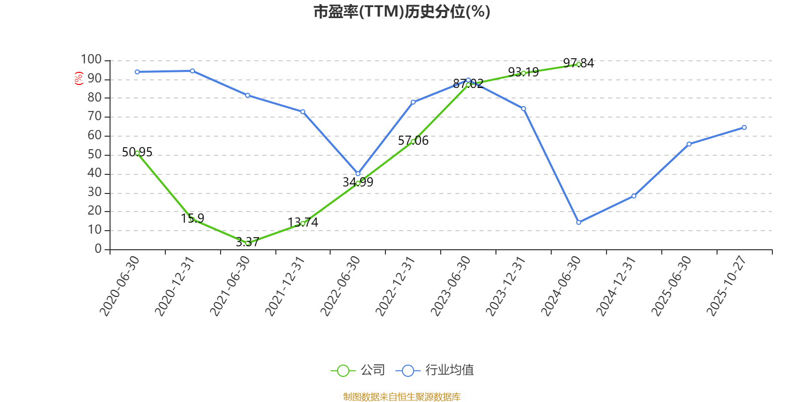市盈率、市净率为负时,不显示当期分位数,会导致折线图中断。