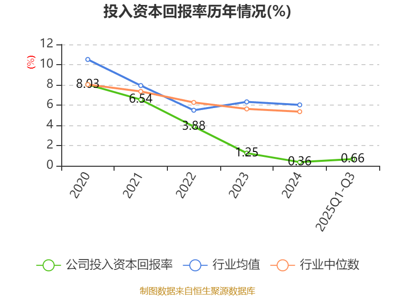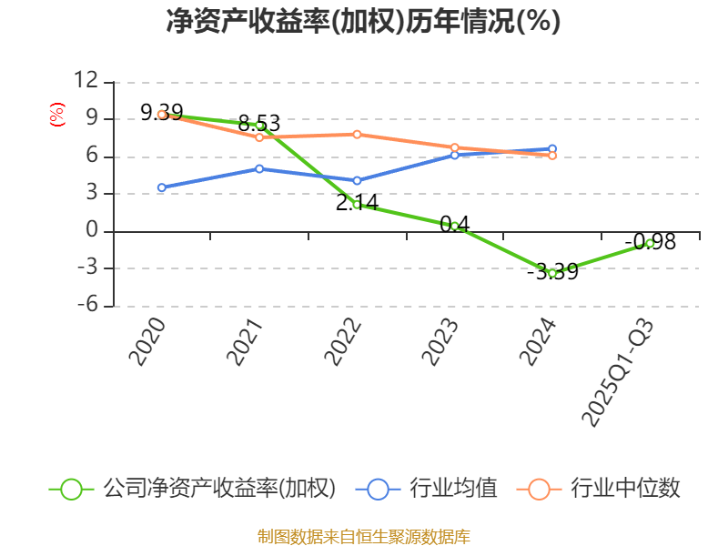 盈利能力方面, 2025年前三季度公司加权平均净资产收益率为-0.98%,同比上升1.18个百分点。公司2025年前三季度投入资本回报率为0.66%,较上年同期上升0.18个百分点。