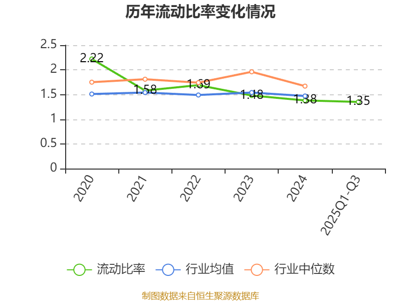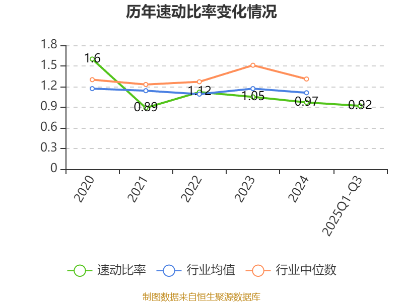 2025年前三季度,公司流动比率为1.35,速动比率为0.92。