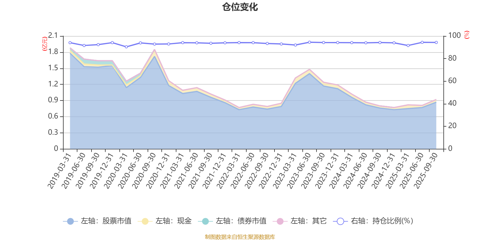 据定期报告数据统计,基金股票仓位长期保持较高水平,近三年平均股票仓位为93.7%,同类平均为72.18%。2023年上半年末基金达到94.51%的最高仓位,2020年一季度末最低,为90.41%。