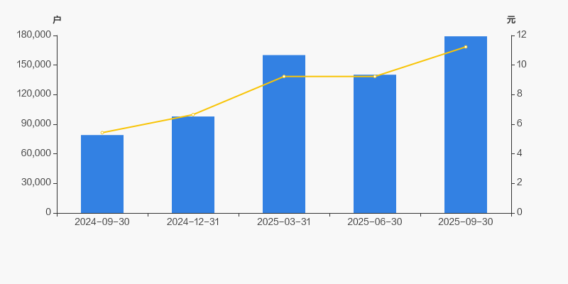 2024年9月30日至今,公司股东户数成倍增长,区间涨幅达126.68%。2024年9月30日至2025年9月30日区间股价上涨106.81%。
