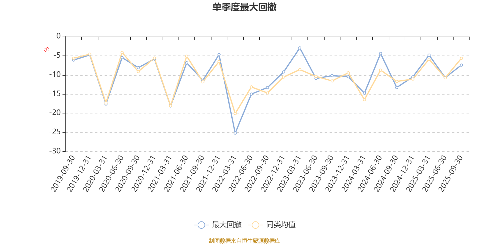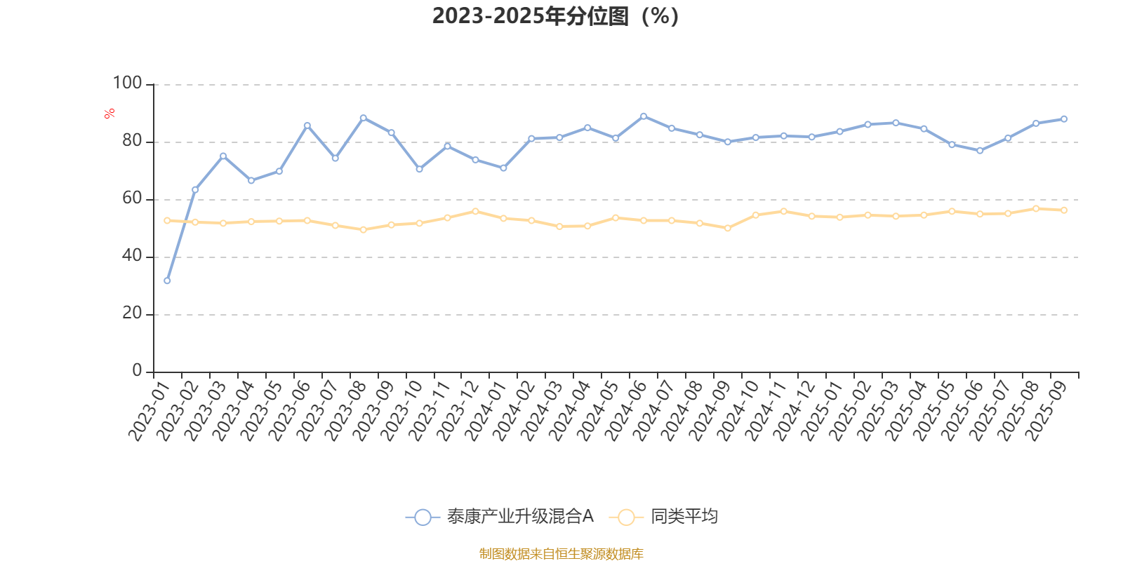通过所选区间该基金净值增长率分位图,可以观察该基金与同类基金业绩比较情况。图为坐标原点到区间内某时点的净值增长率在同类基金中的分位数。