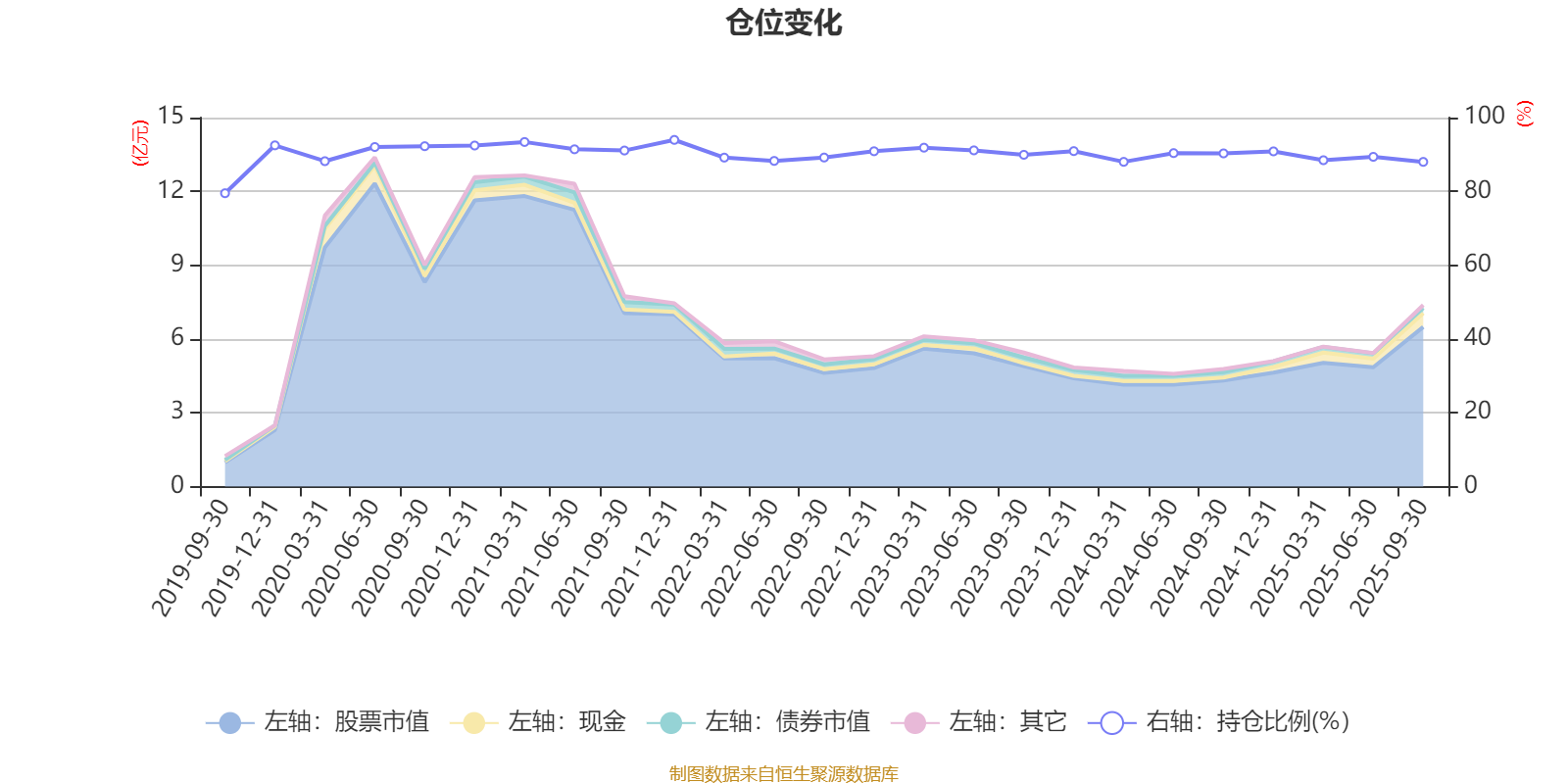 据定期报告数据统计,近三年平均股票仓位为90%,同类平均为85.48%。2021年末基金达到93.96%的最高仓位,2019年三季度末最低,为79.5%。