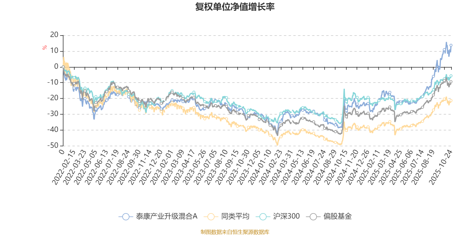 截至10月24日,泰康产业升级混合A近三个月复权单位净值增长率为33.08%,位于同类可比基金56/621;近半年复权单位净值增长率为45.61%,位于同类可比基金96/618;近一年复权单位净值增长率为52.31%,位于同类可比基金87/611;近三年复权单位净值增长率为46.27%,位于同类可比基金77/518。