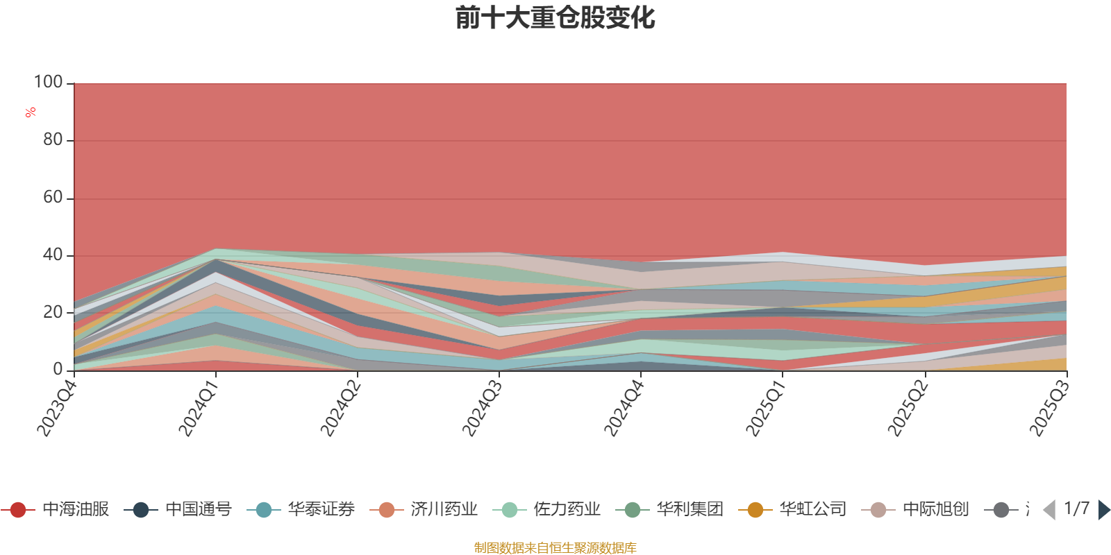基金管理人在三季报中表示,操作上,组合相较二季度更加积极进取,维持了较高仓位运行,结构上增配了预期盈利提升与流动性共振的资产,如 AI 算力硬件、有色金属、非银金融以及部分汽车零部件等板块,减仓了创新药、计算机与军工。