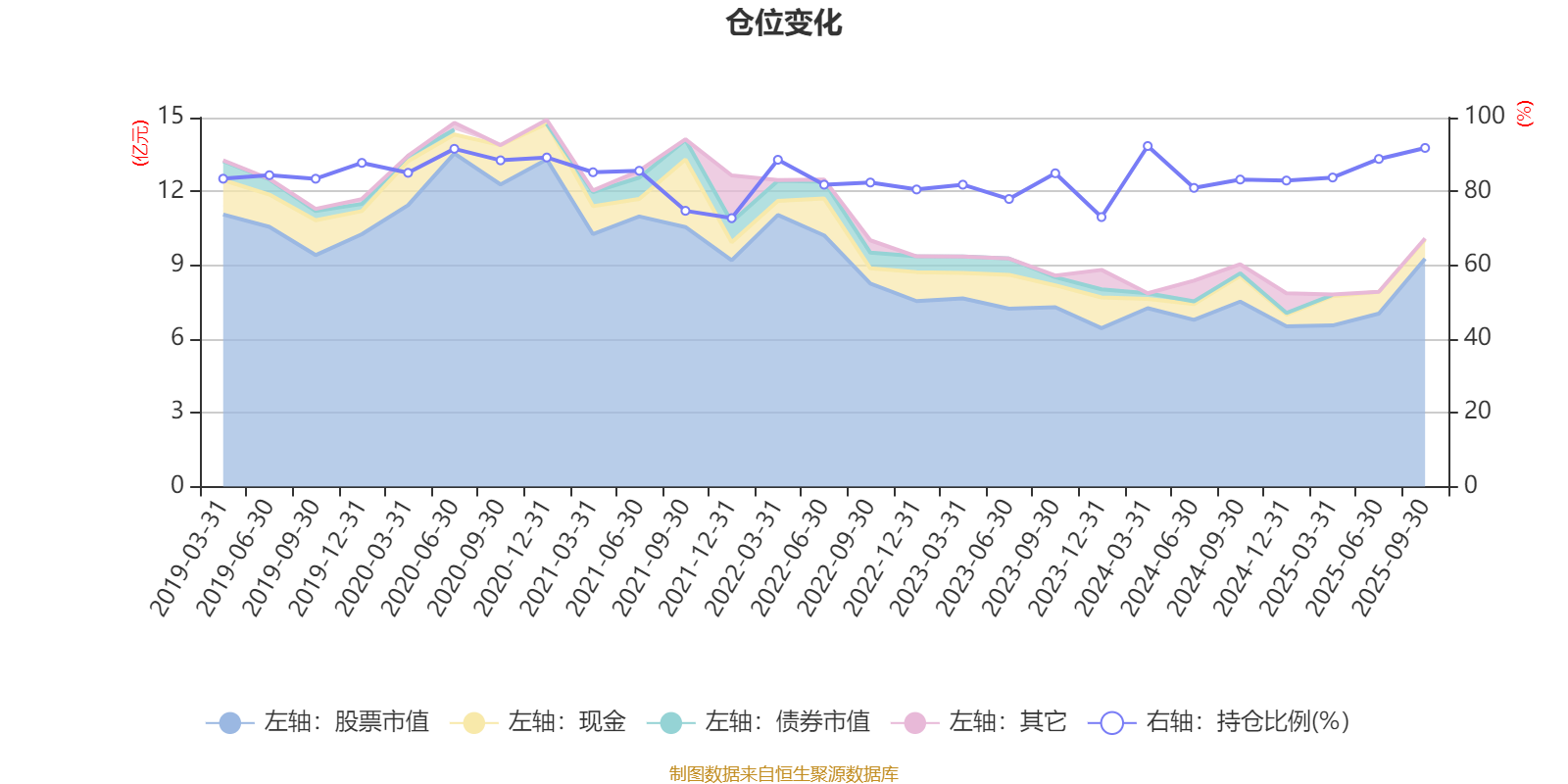 据定期报告数据统计,近三年平均股票仓位为83.5%,同类平均为85.86%。2024年一季度末基金达到92.3%的最高仓位,2021年末最低,为72.75%。