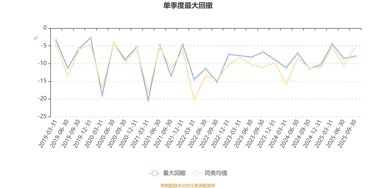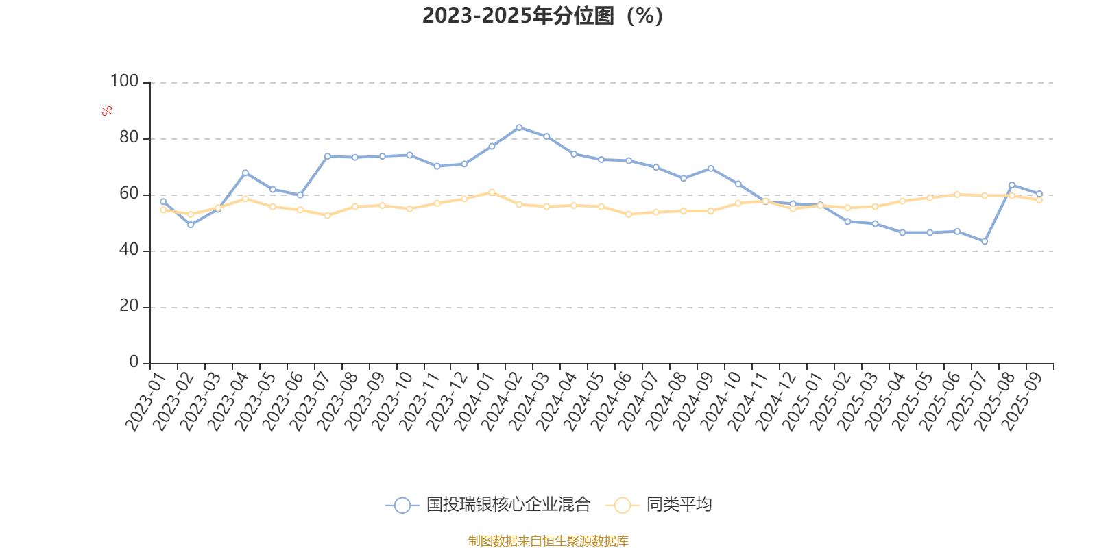通过所选区间该基金净值增长率分位图,可以观察该基金与同类基金业绩比较情况。图为坐标原点到区间内某时点的净值增长率在同类基金中的分位数。