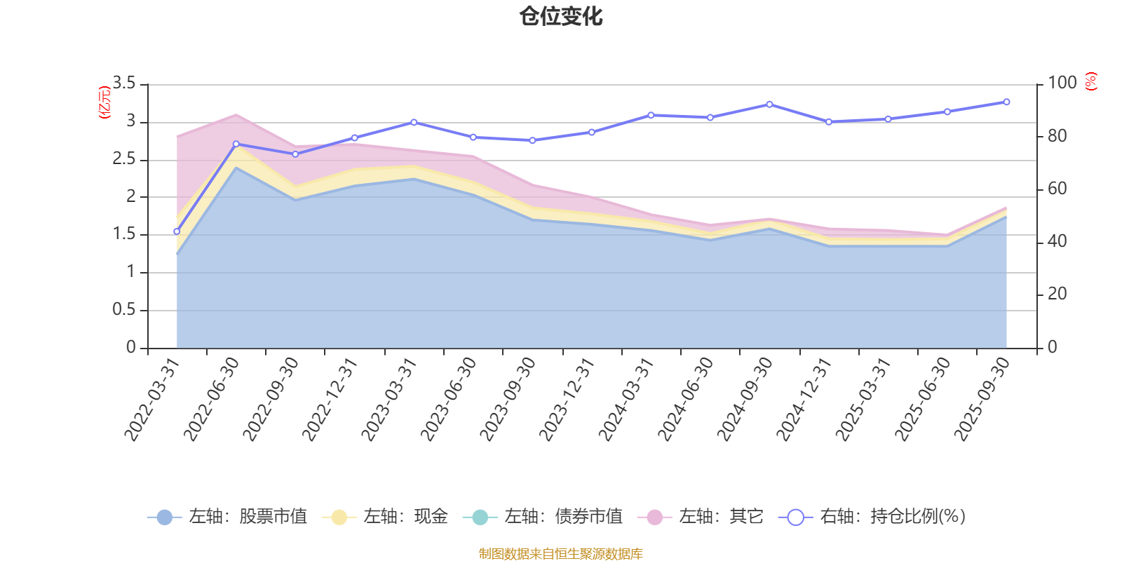 据定期报告数据统计,近三年平均股票仓位为85.74%,同类平均为85.48%。2025年三季度末基金达到93.29%的最高仓位,2022年一季度末最低,为44.2%。