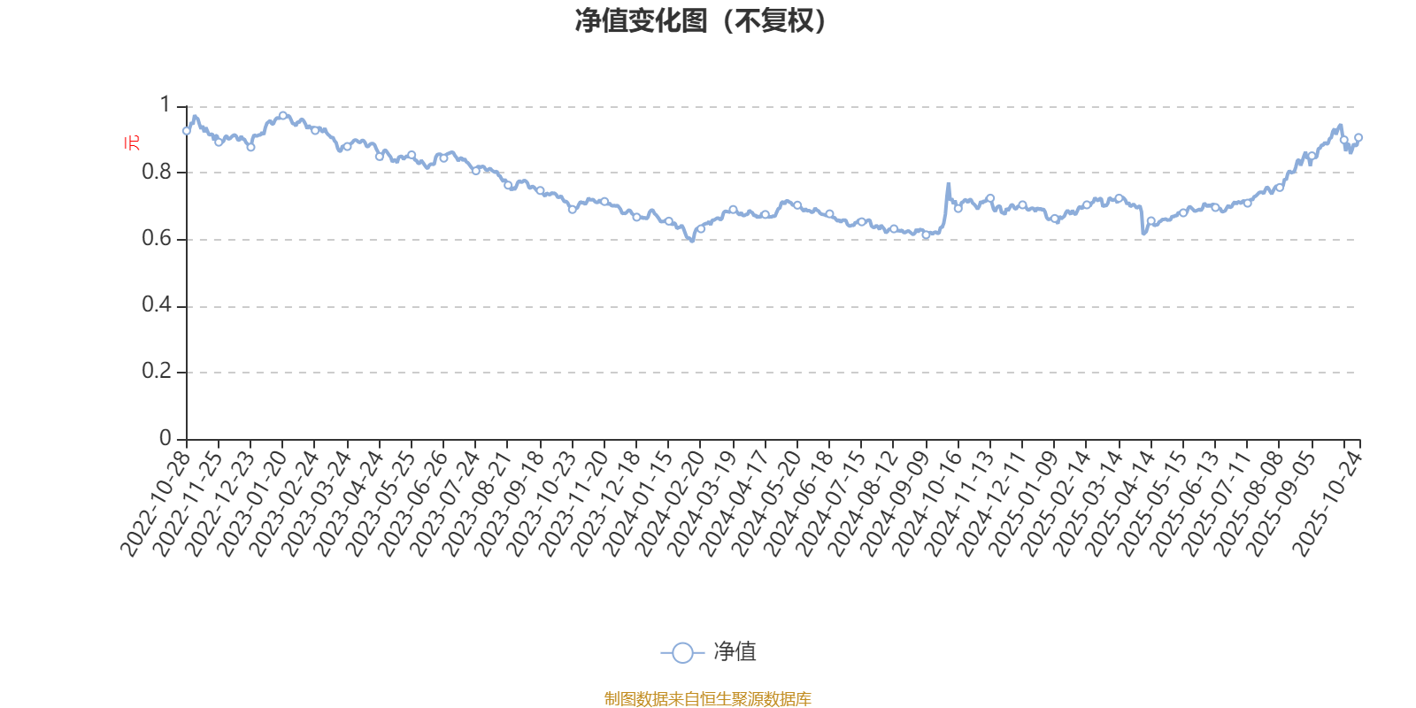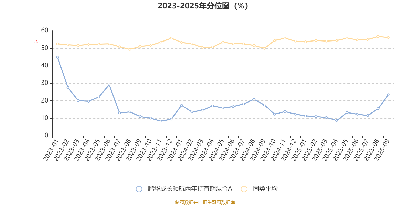 通过所选区间该基金净值增长率分位图,可以观察该基金与同类基金业绩比较情况。图为坐标原点到区间内某时点的净值增长率在同类基金中的分位数。