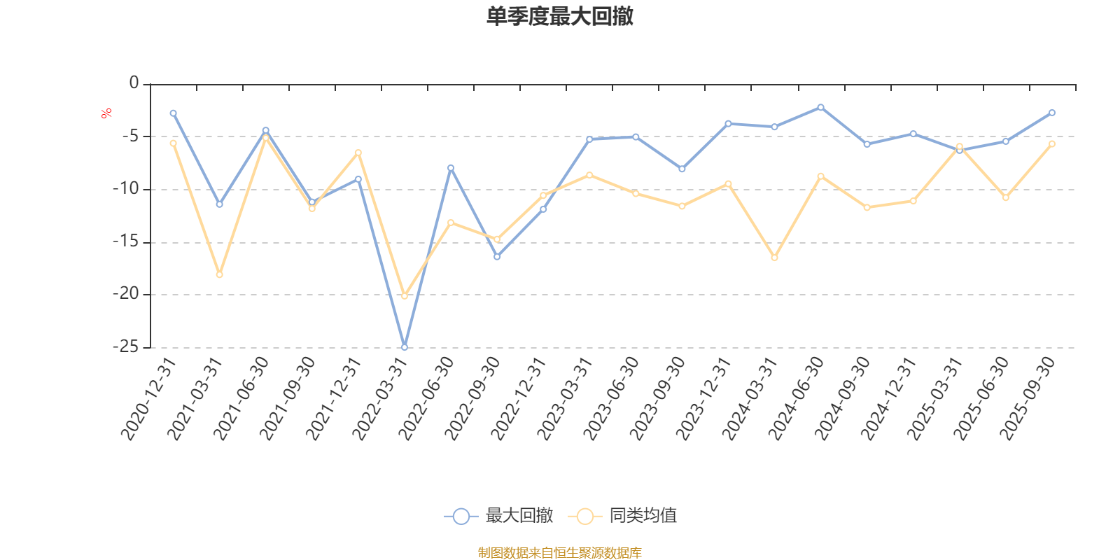 截至10月24日,基金近三年最大回撤为19.13%,同类可比基金排名19/519。单季度最大回撤出现在2022年一季度,为24.97%。