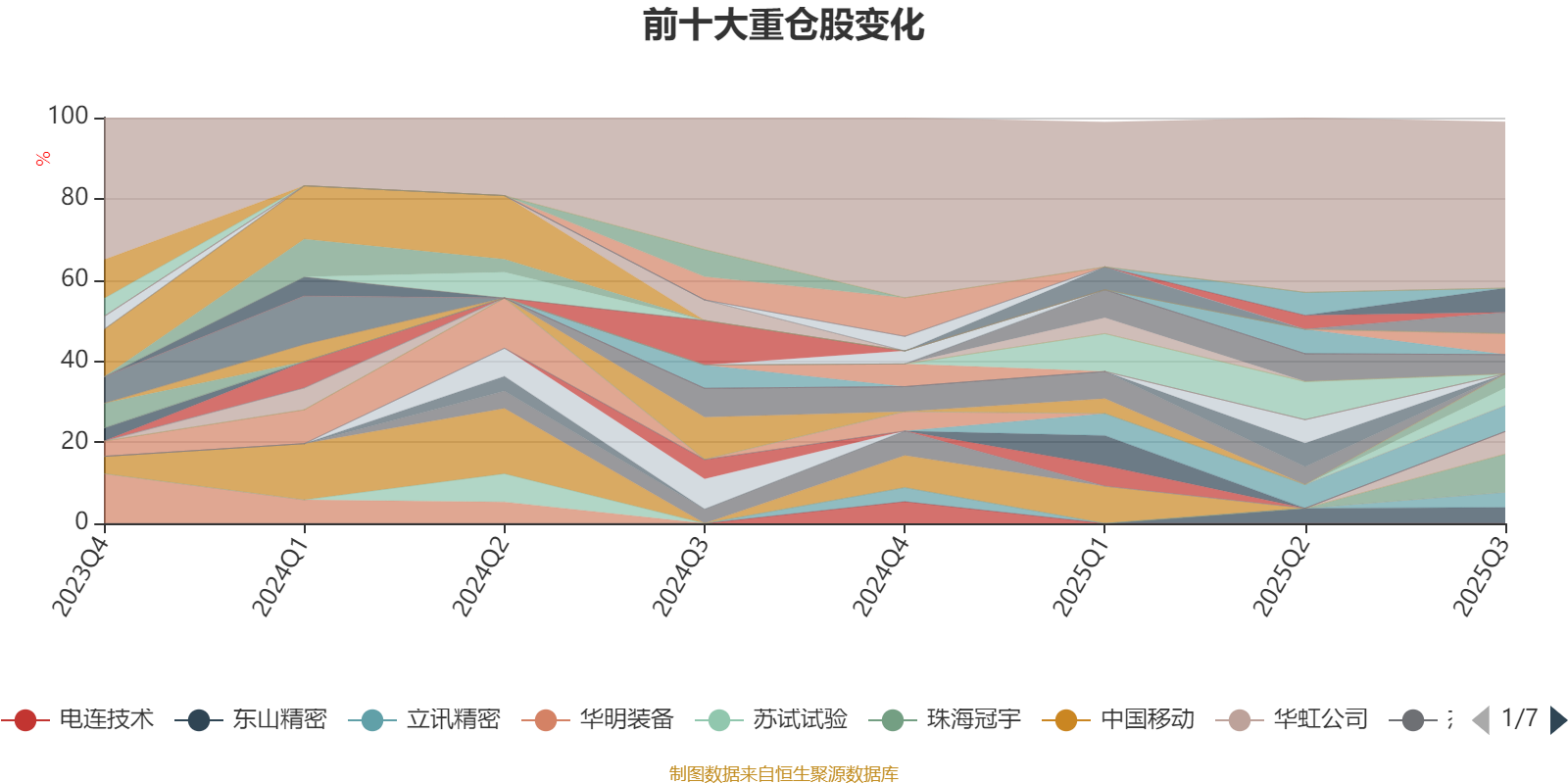 该基金持股集中度较高。截至2025年三季度末,基金重仓股分别是珠海冠宇、ST华通、新易盛、华虹公司、华虹半导体、中科曙光、中芯国际、招金矿业、东山精密、立讯精密、彤程新材。