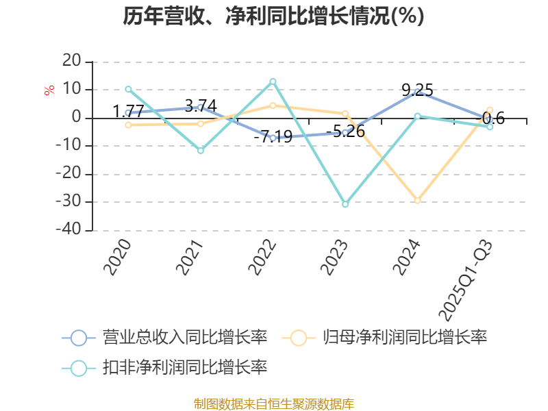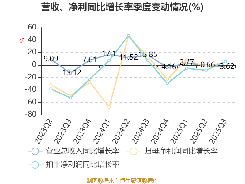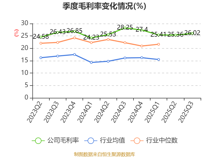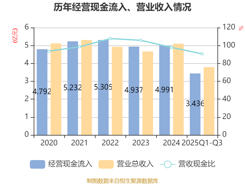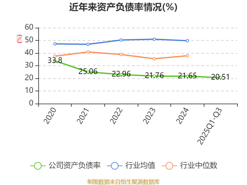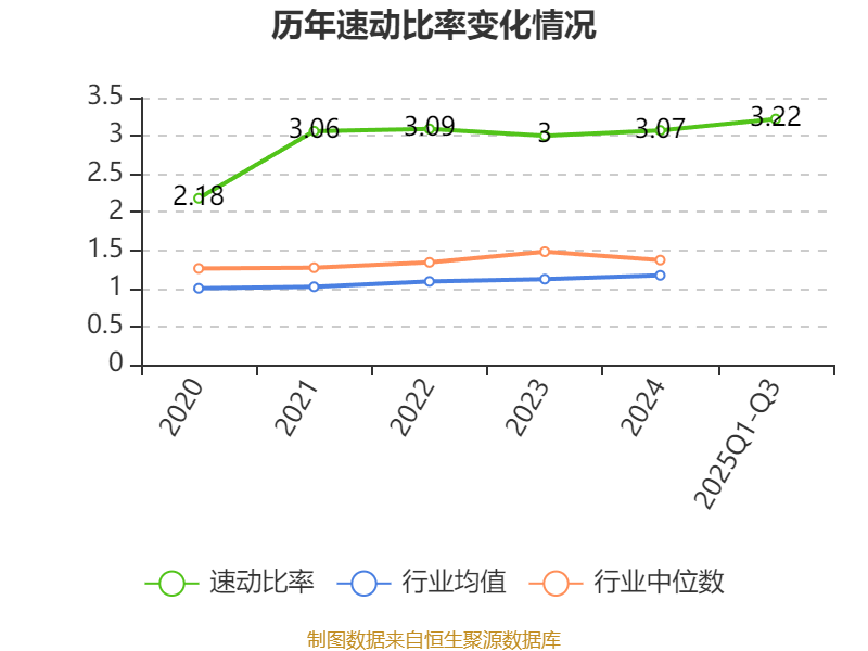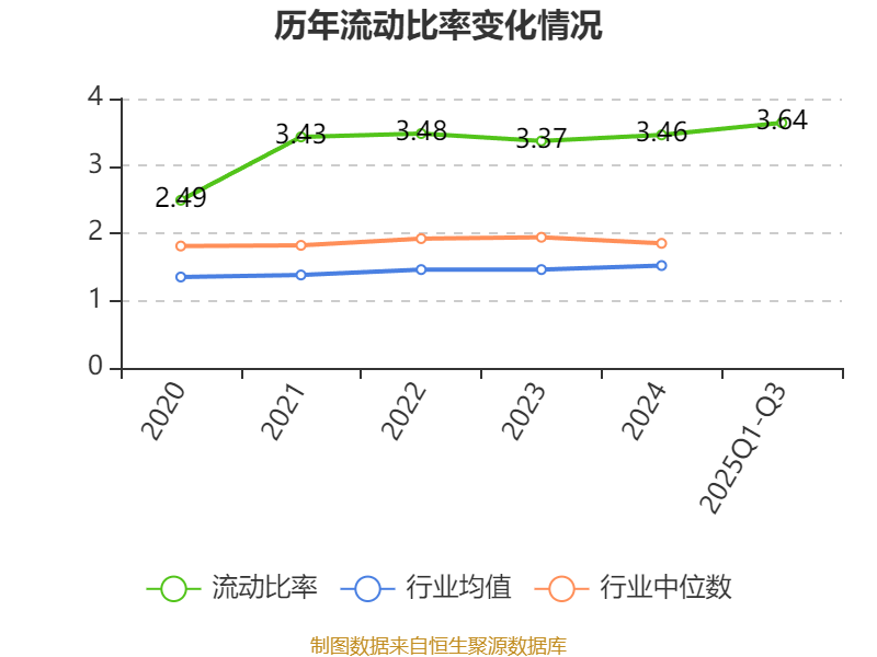 2025年前三季度,公司流动比率为3.64,速动比率为3.22。