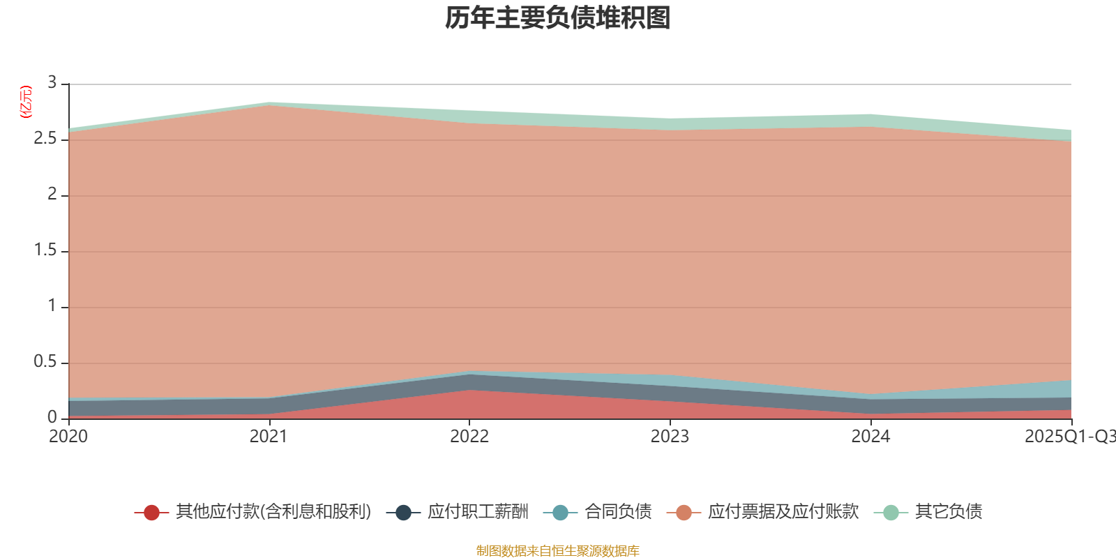 负债重大变化方面,截至2025年三季度末,公司应付票据及应付账款较上年末减少10.71%,占公司总资产比重下降2.05个百分点;合同负债较上年末增加238.42%,占公司总资产比重上升0.87个百分点;其他应付款(含利息和股利)较上年末增加87.02%,占公司总资产比重上升0.29个百分点;应付职工薪酬较上年末减少15.91%,占公司总资产比重下降0.17个百分点。