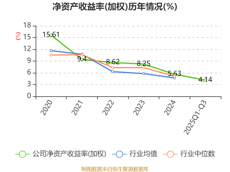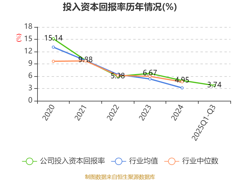 盈利能力方面, 2025年前三季度公司加权平均净资产收益率为4.14%,同比上升0.01个百分点。公司2025年前三季度投入资本回报率为3.74%,较上年同期上升0.51个百分点。