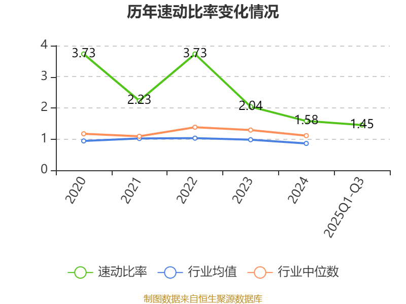 2025年前三季度,公司流动比率为1.97,速动比率为1.45。