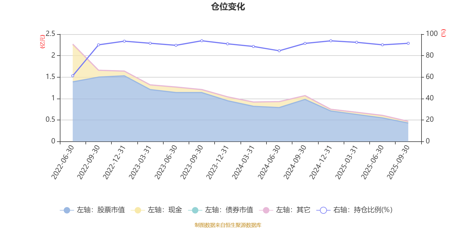 据定期报告数据统计,近三年平均股票仓位为91.01%,同类平均为87.01%。2023年三季度末基金达到93.88%的最高仓位,2022年上半年末最低,为61.24%。