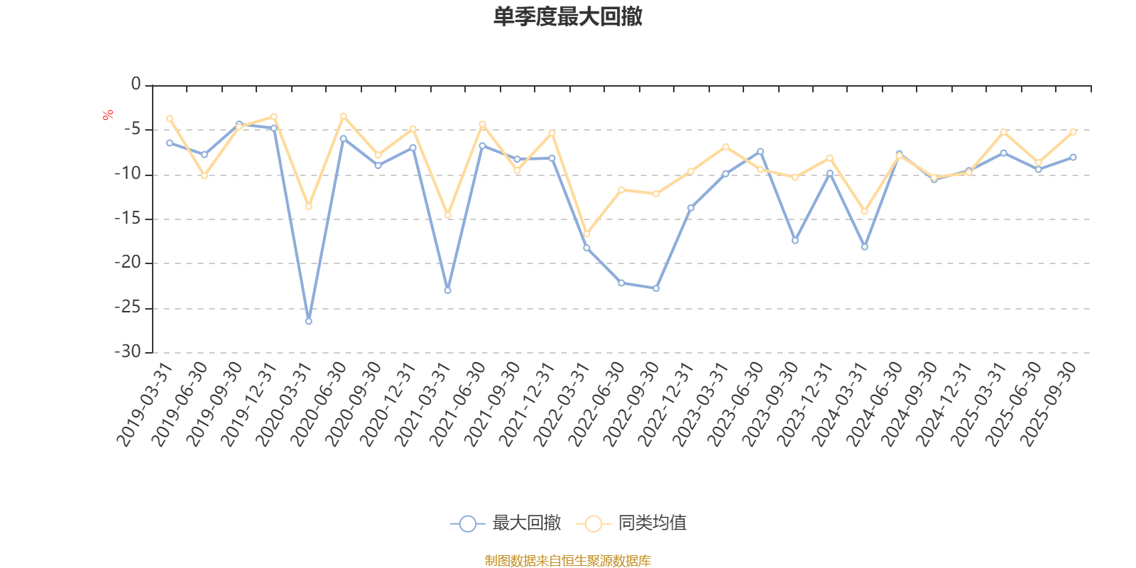 截至10月24日,基金近三年最大回撤为37.9%,同类可比基金排名831/1283。单季度最大回撤出现在2020年一季度,为26.49%。
