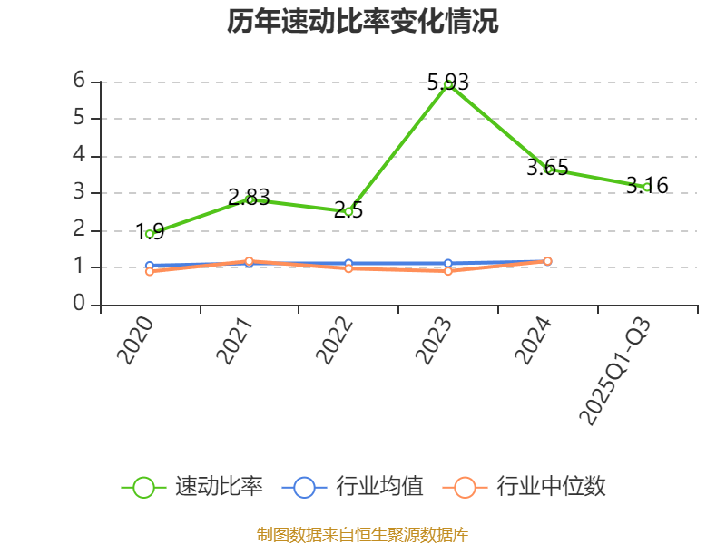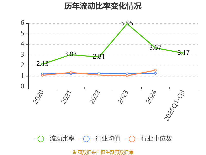 2025年前三季度,公司流动比率为3.17,速动比率为3.16。