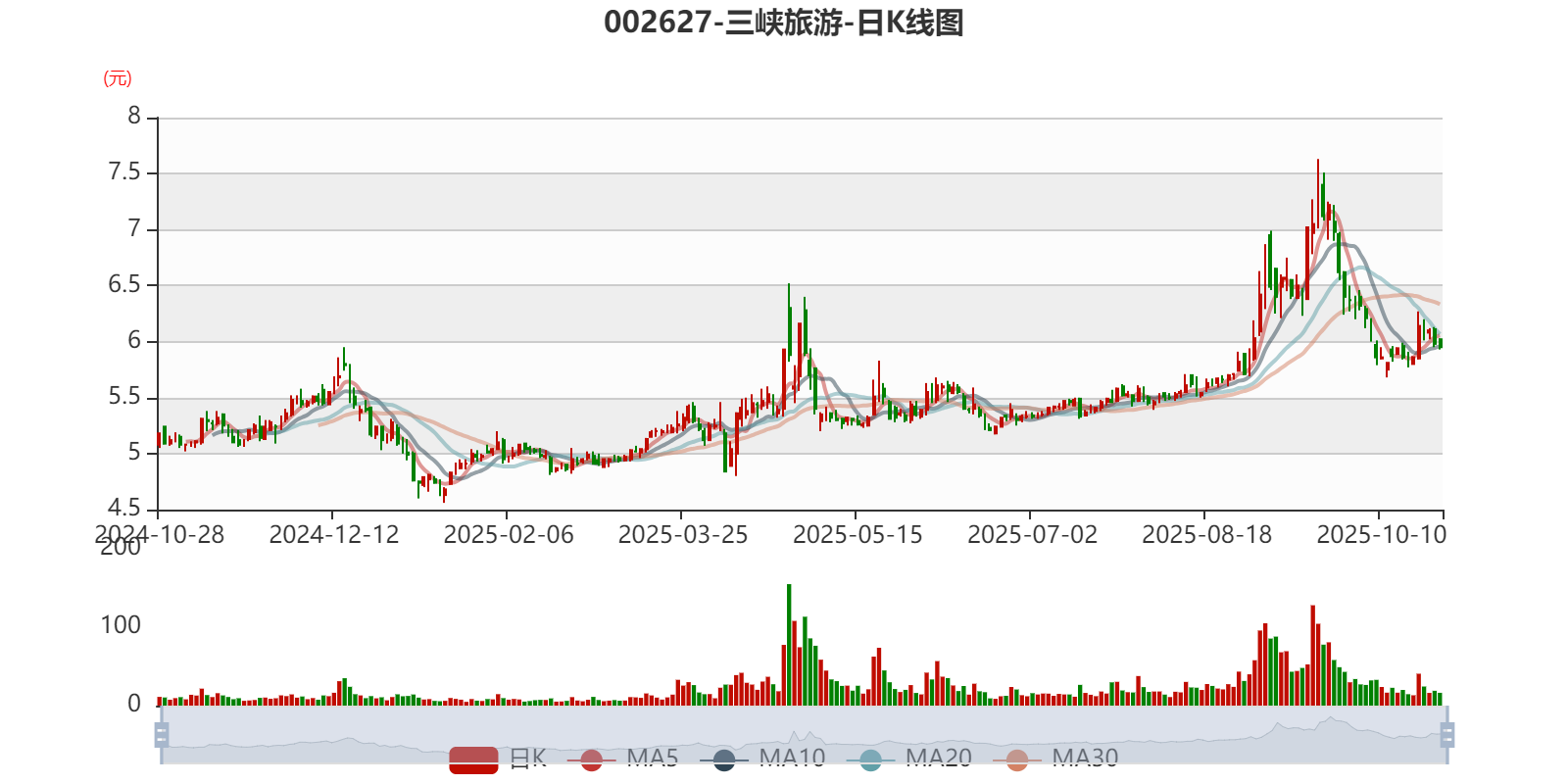 中证智能财讯三峡旅游(002627)10月28日披露2025年第三季度报告。前三季度公司实现营业总收入6.09亿元,同比增长9.48%;归母净利润8586.66万元,同比下降23.29%;扣非净利润9271.6万元,同比下降10.96%;经营活动产生的现金流量净额为2亿元,同比增长10.77%;报告期内,三峡旅游基本每股收益为0.1185元,加权平均净资产收益率为2.77%。