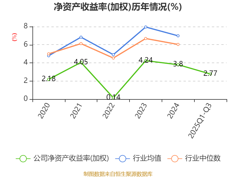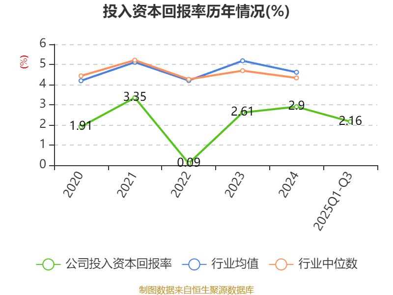 盈利能力方面, 2025年前三季度公司加权平均净资产收益率为2.77%,同比下降0.77个百分点。公司2025年前三季度投入资本回报率为2.16%,较上年同期下降0.66个百分点。