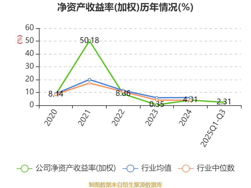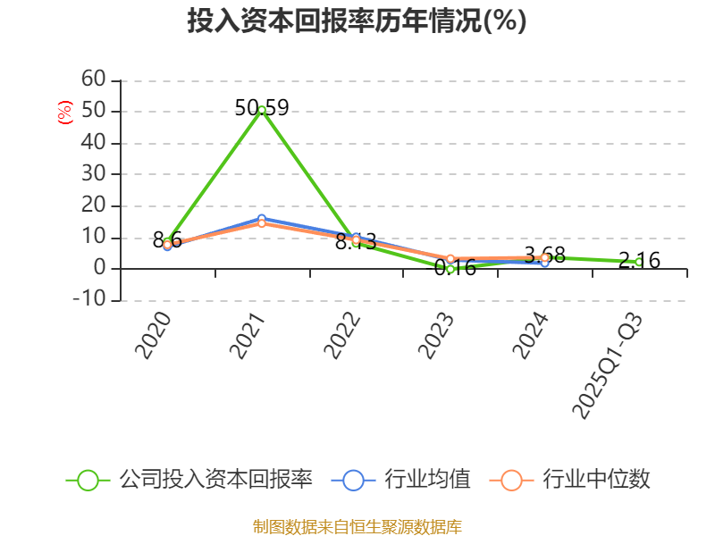 盈利能力方面, 2025年前三季度公司加权平均净资产收益率为2.31%,同比下降1.6个百分点。公司2025年前三季度投入资本回报率为2.16%,较上年同期下降1.47个百分点。