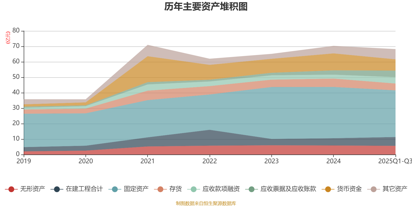 资产重大变化方面,截至2025年三季度末,公司货币资金较上年末减少33.41%,占公司总资产比重下降4.9个百分点;其他非流动资产较上年末增加2741.92%,占公司总资产比重上升3.83个百分点;固定资产较上年末减少9.06%,占公司总资产比重下降2.95个百分点;应收款项融资较上年末增加61.41%,占公司总资产比重上升2.41个百分点。