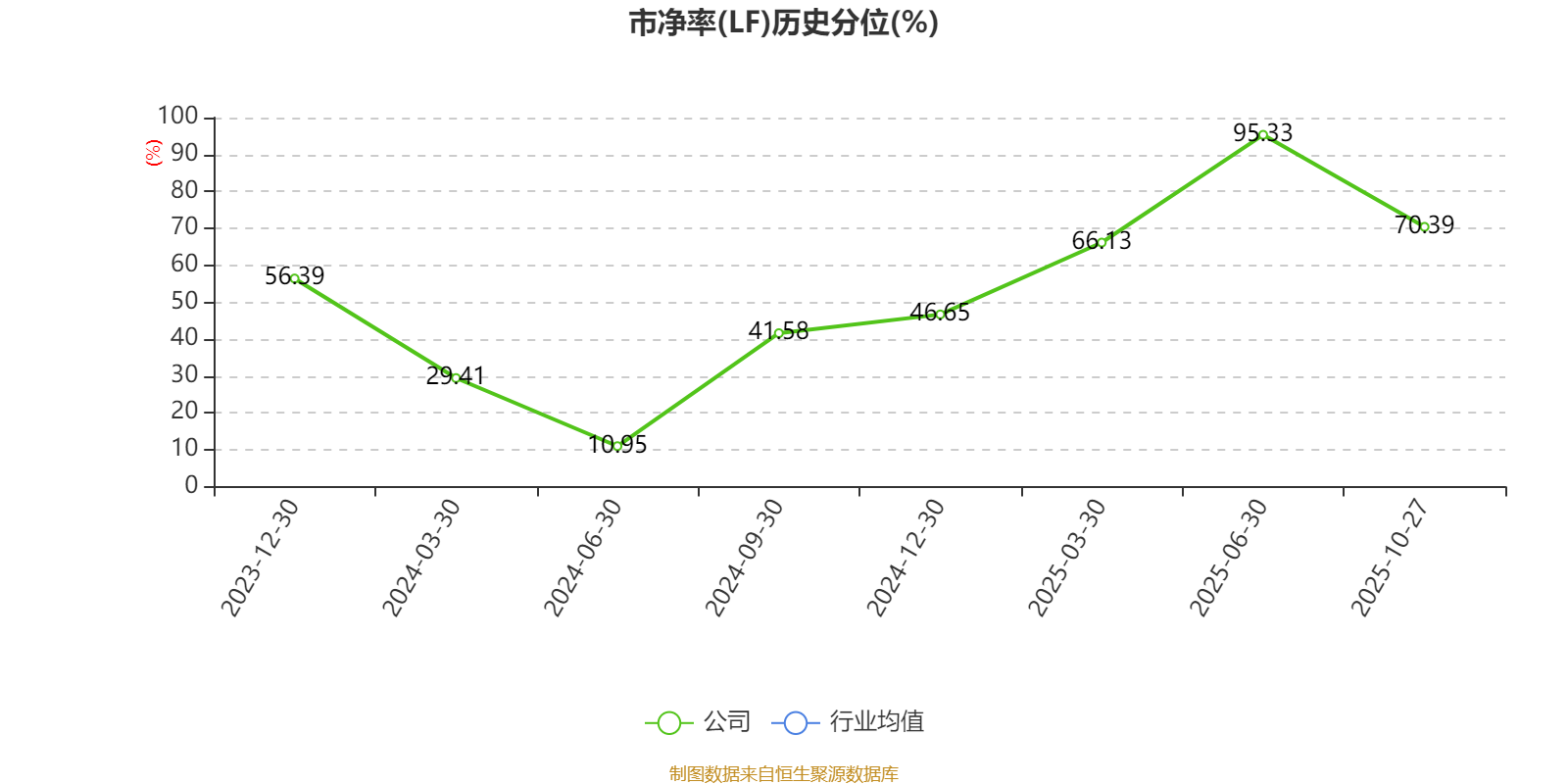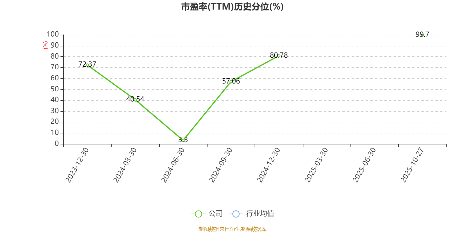 市盈率、市净率为负时,不显示当期分位数,会导致折线图中断。
