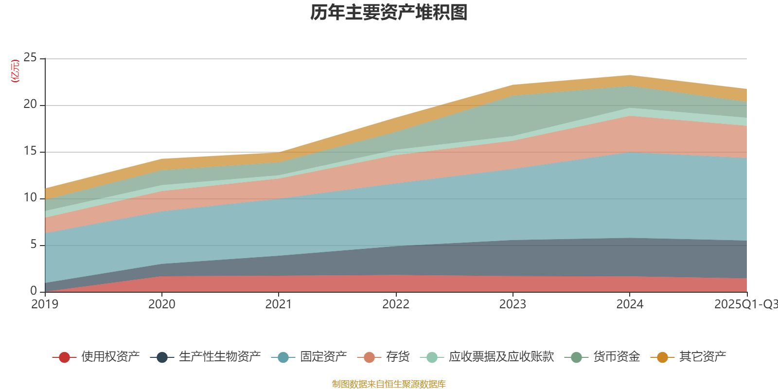 资产重大变化方面,截至2025年三季度末,公司货币资金较上年末减少26.72%,占公司总资产比重下降2.19个百分点;固定资产较上年末减少3.65%,占公司总资产比重上升1.17个百分点;生产性生物资产较上年末减少1.68%,占公司总资产比重上升0.9个百分点;存货较上年末减少11.19%,占公司总资产比重下降0.85个百分点。