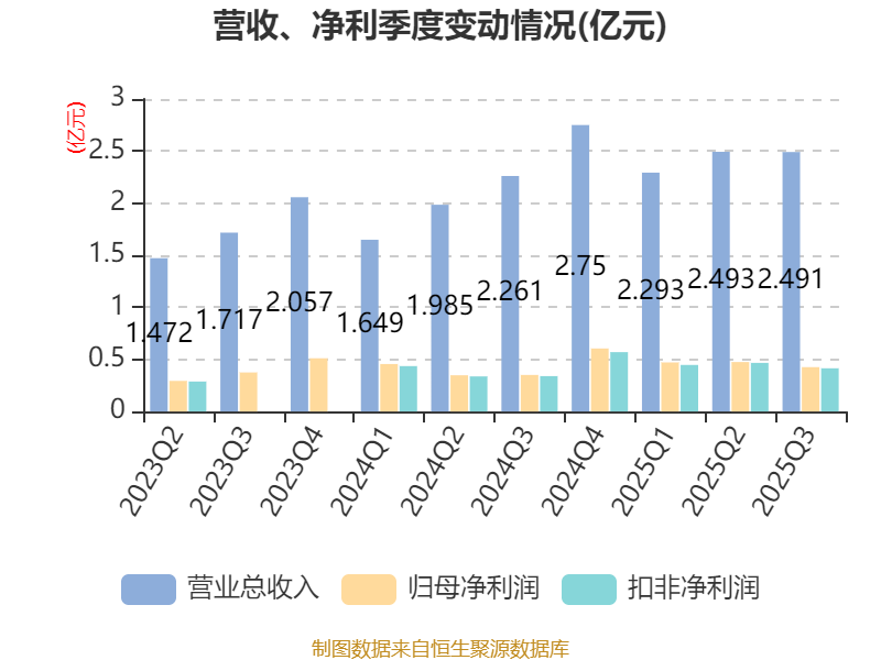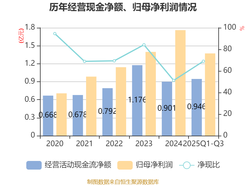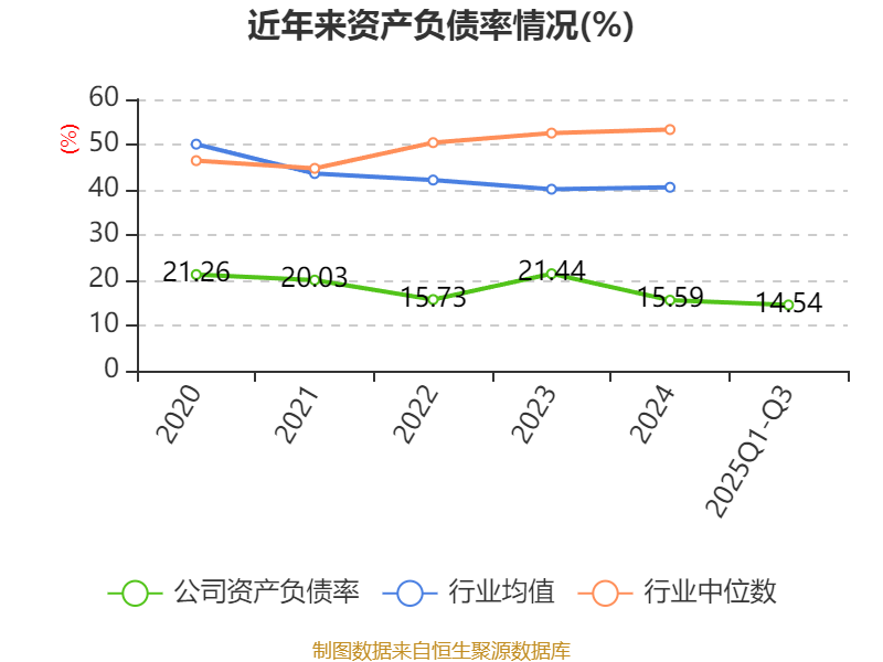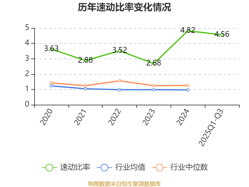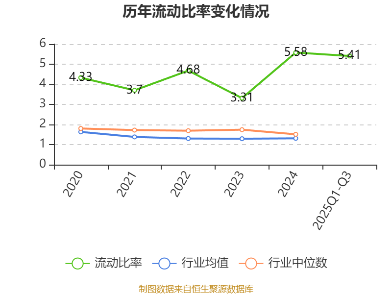 2025年前三季度,公司流动比率为5.41,速动比率为4.56。