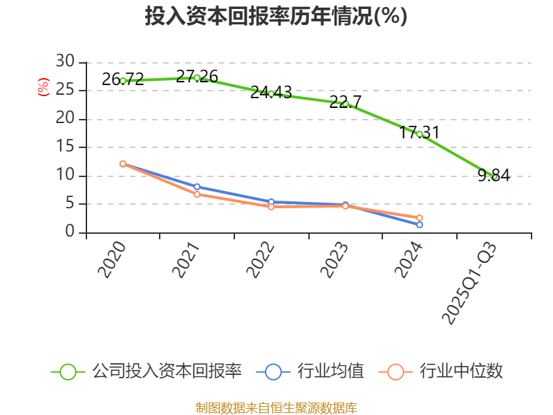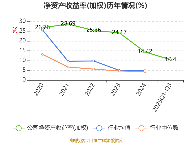 盈利能力方面, 2025年前三季度公司加权平均净资产收益率为10.4%,同比下降0.97个百分点。公司2025年前三季度投入资本回报率为9.84%,较上年同期下降1.8个百分点。