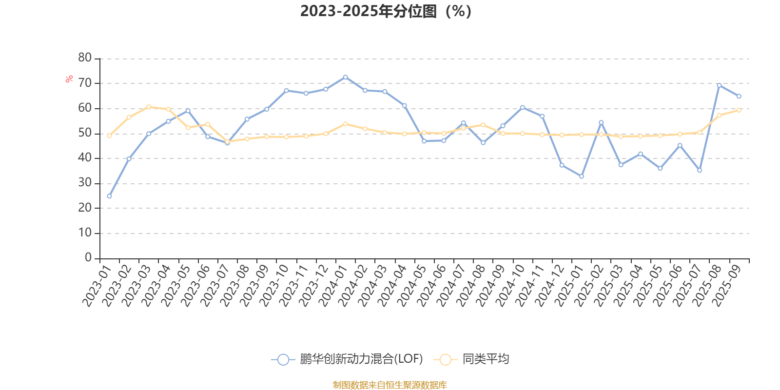 通过所选区间该基金净值增长率分位图,可以观察该基金与同类基金业绩比较情况。图为坐标原点到区间内某时点的净值增长率在同类基金中的分位数。