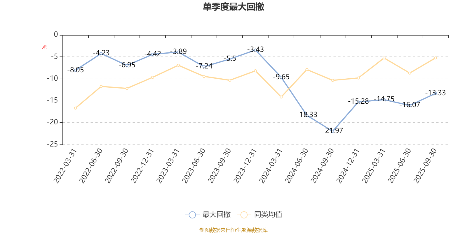 截至10月24日,基金近三年最大回撤为29.91%,同类可比基金排名545/1283。单季度最大回撤出现在2024年三季度,为21.97%。