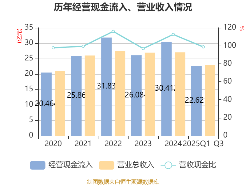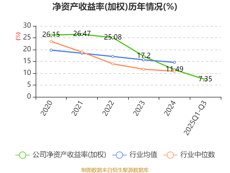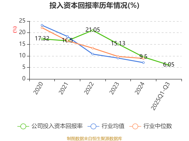 盈利能力方面, 2025年前三季度公司加权平均净资产收益率为7.35%,同比下降1.72个百分点。公司2025年前三季度投入资本回报率为6.05%,较上年同期下降1.44个百分点。