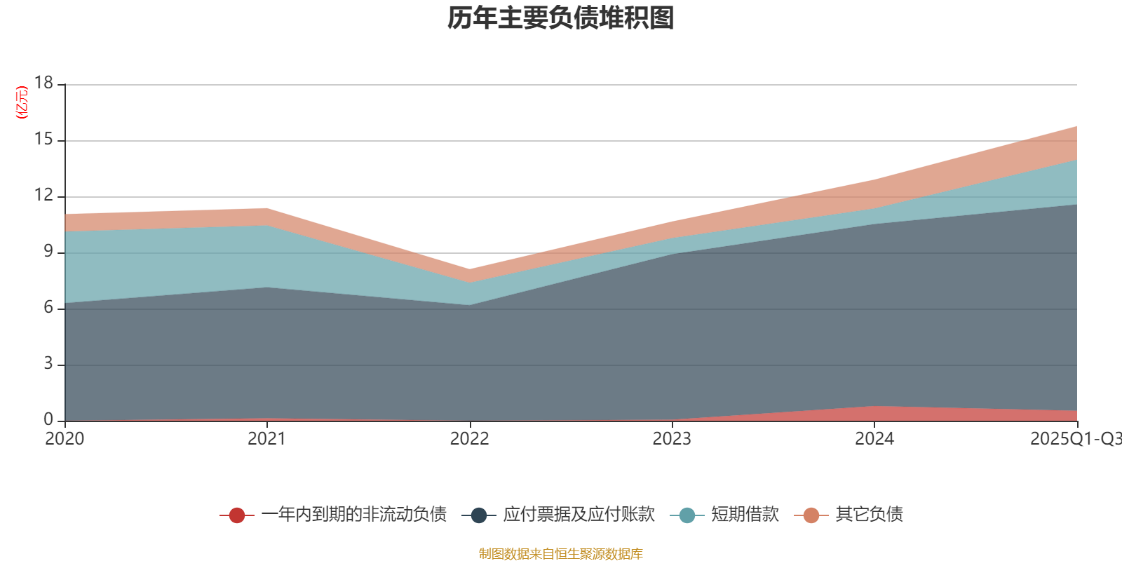 负债重大变化方面,截至2025年三季度末,公司短期借款较上年末增加185.97%,占公司总资产比重上升4.58个百分点;其他应付款(含利息和股利)较上年末增加183.97%,占公司总资产比重上升1.32个百分点;合同负债较上年末减少63.08%,占公司总资产比重下降1.14个百分点;一年内到期的非流动负债较上年末减少32.3%,占公司总资产比重下降1.04个百分点。